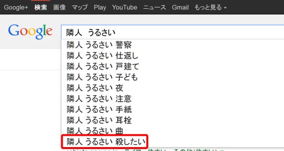 Googleで 隣人 うるさい と検索するとゾッとするような検索候補が挙がってくる ロケットニュース24